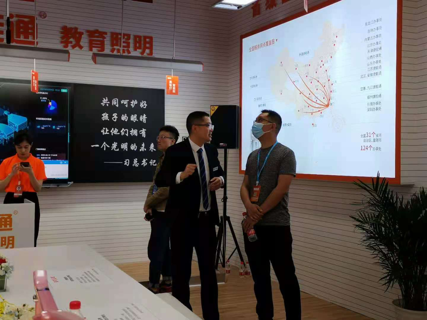 圖片2:科技公司李總在聽(tīng)取立達(dá)信工作人員有關(guān)護(hù)眼燈對(duì)學(xué)生預(yù)防近視相關(guān)的講解